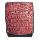 An Ancient Egyptian Hieroglyphs Red Backpack with ancient hieroglyphs engraved on stone. Crack can be seen on the left.