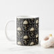 Ancient-looking and worn beige skulls amidst a beige and silvery-grey damask pattern creates a dramatic, Gothic coffee mug. Perfect for anyone who embraces the darker side of life.