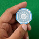 Love the poker chip. It looks just as it appears on the web. It feels about the weight of a casino poker chip. Only difference is the texture of the middle. Overall, very happy with our purchase. Printing turned out perfect. Colors look great, and the text and imaging is all centered very nicely.