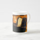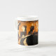 Show off your love of ancient Greek history with this stylish bone china mug! The image reproduces details from a black-figure terracotta amphora that has been attributed to Exekias, made in c. 540 BCE. (In the Metropolitan Museum of Art, New York; image is in the public domain, digitally restored by Howell's Paper Emporium in 2024.)