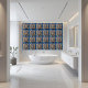 This elegant tile features a classic Greek key pattern in a luxurious gold colour, set against a rich, deep blue background. The intricate design and contrasting colours create a visually striking piece, perfect for adding a touch of ancient sophistication to any space. Ideal for use in bathrooms, kitchens, or as a decorative accent, this tile combines timeless style with modern durability.