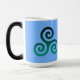 Green Triskele symbol. The Triskele or Triskelion symbol consists of three interlocked spirals or three arms as if it is moving from its centre. This Celtic symbol of movement or action represents the three worlds; the celestial, physical, and spiritual.