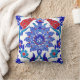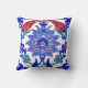 Beautiful Ancient Handmade Blue Turkish Floral Tulip Tile Pattern Eastern Oriental Accent Home Decor Throw Pillow. Turkish Tile Colour Scheme: blue, turquoise, rusty orange red and white.