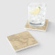 The coasters are gorgeous, a quality feel and heavy weight. They look like a precious archeological find. A rustic stone juxtaposed with a modern floral black and white print. I like the way the print goes slightly imperfect on the cut stone edges giving them a kind-of natural beauty.
