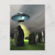 A UFO hovers over an ancient stone circle.
