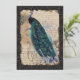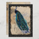 NOTE: This is a flat printed design, there is no actual 3D elements to this artwork. Everything is graphically created to look very real however. PAPER SELECTION: This is shown on "basic paper", another great choice would be "metallic ice" which is a clean white, pearlized shimmery surface. It would also be beautiful on "Champagne Metallic" linen, felt or any of the other choices. COLOR PALETTE: black, aqua blue, cream, cream, tan, brown. DESIGN: This is a matching Save the Date Announcement Invite Card that coordinates with the wedding invitation sets of the same name. This design consists of a stately peacock on a tree branch vintage art element layered over etchings, swirls, antique handwriting, hand painted parchment and vintage love birds. All of this is layered over a tea stained, antiqued parchment like background. The teastained background has a very old and elegant look to it. This design has the appearance of a hand torn and curled edge layered over a hand designed damask type swirl background. The background colour can be changed to match your wedding.