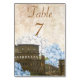 A lovely image of the Colosseum and the Arch of Constantine in Rome from a Baroque painting along with beautiful blue and white vintage hydrangeas on a textured background with a faint hint of vintage damask and scrollwork make a beautiful romantic wedding table card.  Matching items and other vintage Rome designs are available in my Zazzle store.