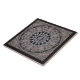 A graphic image featuring a Mandala in carved stone, scrolled shell shaped motifs and criss crossing arches rotating to create an ocular circle medallion. The colour scheme is neutral rosy taupe, grey, brown and black, with a dark brown border.