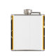 The flask itself is fine. It’s a cheap flask, obviously bought in bulk, however am prepared to overlook that. Given that it is a personalized item, I would have liked to have seen gift boxing instead of the generic packaging. Terrible printing, and/or quality. It’s a cheap, tacky vinyl. It is not cut straight and is also applied in a way that it is overhanging the bottom, causing the glue to catch on items and it will eventually roll and tear, damaging the wrap.