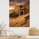 A mysterious ancient temple buried in desert sands, illuminated by glowing futuristic symbols. This cinematic artwork blends ancient Egyptian architecture with sci-fi elements, creating a unique fusion of history and advanced technology. Warm sunset tones contrast with the cool neon glow, making it a striking statement piece for lovers of history, fantasy, and futuristic design.