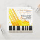A trendy invitation featuring a piano keyboard with the spice of grunge abstract foliage, circles and yellow-rust colour. Suitable for either gender.