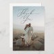This chic and elegant flat Thank You card features a full page photo and a sophisticated layout with a beautiful script font reading "Thank You" on the front. The back of this stylish photo features the couple's names connected with the word "And" in an elegant script font along with a blank space to write your personalised thank you note. The blue colour palette of the type can be customised to fit your wedding colour scheme.