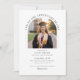 Mark the next chapter with the And So the Adventure Begins arch photo graduation invitation. This black-and-white design is perfect for high school, college, nursing, or master's graduates. It is a stylish choice for announcements, digital invites, or grad party dinners, blending elegance with a modern touch.