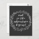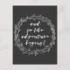 NewParkLane - Postcard, with inspirational quote 'And so the adventure begins' in an elegant handwritten script typography in a wreath, against a chalkboard grey background.