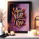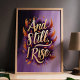 Embrace your inner strength with this stunning "And Still, I Rise" wall art. Featuring bold gold typography surrounded by vibrant orange and purple feathers, this design is a celebration of resilience and empowerment. Perfect for adding inspiration to your home, office, or as a meaningful gift, this piece radiates confidence and determination with its rich colours and uplifting message.