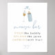 This "momosa" baby shower sign features a dusty blue and gold baby bottle and champagne glass and handwritten fonts. This design is perfect for your boy baby shower at any time of year.