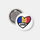 A cool, cartoon style heart design with the flag and the 3 letter country code of the country.