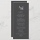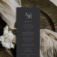 This classic grey dark academia monogram wedding menu card from the Andrea Collection is perfect for a modern wedding.