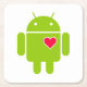 Android Robot Icon with a Heart Square Paper Coaster