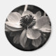 Black and white Floral photography. Photograph of anemone on round magnet. Matching poster, greeting card, postcard, postage and more...