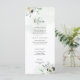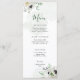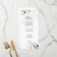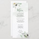 Celebrate the in style with this elegant menu card featuring watercolor anemone and eucalyptus greenery bouquets on a soft sage green watercolor wash.