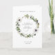 A beautiful folded wedding program perfect for a winter wedding, featuring a watercolor floral wreath of anemones and greenery and a light grey ampersand.