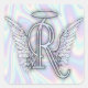 Angel Alphabet R Initial Letter Wings Halo Square Sticker