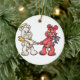 angel and devil teddy bears in a tug of war ceramic ornament
