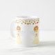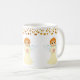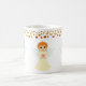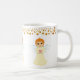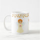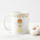 Elegant and beautiful mug with angel and gold dots confetti decoration on white background. The gold design is just an image. Enjoy this luxury mug.