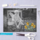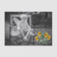 Tissue paper with an image of a statue of an Angel reading a book with sunflowers beside her.