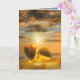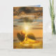 A Young Angel Boy sitting on the ocean water with a candle that is powered with Love, Hope and Healing. So bright is this light that it can penetrate and reveal all the darkest of realms on Earth and bestow these gifts to the planet. Warm golden colours dominate this artwork with a touch of baby blue sky. / Inside the card the 2nd artwork image has a glowing winged angel with outreached hands holding a glowing orb of light. / Inside card embedded text: Wishing you peace, love and joy this Christmas.