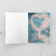 A young Angel Boy sitting on the ocean water with a candle that is powered with Love, Hope and Healing. So bright is this light that it can penetrate and reveal all the darkest of realms on Earth and bestow these gifts to the planet. Warm golden colours dominate this artwork with a touch of baby blue sky.The 2nd artwork inside the card is a Aqua Heart floating over the ocean, as water flows from the ocean up to the Heart and recycles around it.