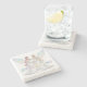The coasters are gorgeous, a quality feel and heavy weight. They look like a precious archeological find. A rustic stone juxtaposed with a modern floral black and white print. I like the way the print goes slightly imperfect on the cut stone edges giving them a kind-of natural beauty.