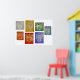 A series of seven angel paintings on different sized canvases. Painting backgrounds are white, yellow, green, blue, purple, red, and orange. Profits from this sale support the non-profit 501(c)3 DonnaBellas Angels.