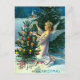 A beautiful vintage Christmas postcard featuring an angel decorating a Christmas tree.