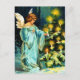 A beautiful vintage Christmas postcard featuring an angel decorating a Christmas tree.