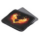 Angel fire heart with flaming wings on black background.