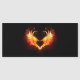 Angel fire heart with flaming wings on black background.