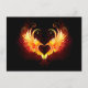 Angel fire heart with flaming wings on black background.
