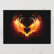 Angel fire heart with flaming wings on black background.