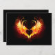 Angel fire heart with flaming wings on black background.