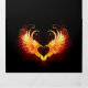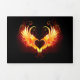 Angel fire heart with flaming wings on black background.