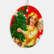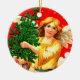 Angel in Yellow Carrying Xmas Tree Ceramic Ornament