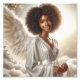 In a celestial realm where serenity reigns supreme, an African American teen girl angel graces the heavenly expanse with her radiant smile. Her serene countenance exudes warmth and compassion, infusing the air around her with a sense of peace and tranquillity. With eyes that sparkle like stars, she gazes upon the universe with a sense of wonder and awe. Her bright and genuine smile reflects her soul's beauty, illuminating the heavens with its pure light. There is an undeniable sense of grace and divinity in her presence, as she embodies the timeless beauty and wisdom of angelic beings.