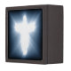 I am very pleased with the quality of this box. The lid comes all the way off (no hinges) and is held shut by magnets. I am using mine to store guitar pics (see pictures I've posted). The box is solidly constructed and has held up well since I've received it. Good quality graphics. Printing was good, but not as great as the same design turned out on other products. It seemed to be a little bit faded (thus the reason for 4 stars), but still, decent looking and I am happy with the purchase.