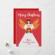 Angel Merry Christmas Red Green Wreath Wings Name Holiday Card
