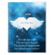 Create your own one of a kind custom memorial photo notebook. Would make a lovely gift for anyone mourning the loss of a loved one when you don’t have the words to express how you feel. Beautiful white feather Angel wings with a white heart in between and a halo above. Has a beam of light shining down from the top and 3 little white floating hearts underneath with a blue and black starry night background. Personalise/customise your notebook with a photo and/or the name of a loved one, your own words, phrase, verse, quote, initials, date of birth, date of death, etc. Delete the sample text and easily add your own in many available font styles and colours. Position the text anywhere. You can also purchase as is with the sample text “Your life was a gift, Your memory a treasure, You are loved beyond words, And missed beyond measure” or without any text. Also suitable for pet memorial.