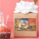 This design features a painting by the British Pre-Raphaelite artist Sir Edward Burne-Jones (1833–1898). It depicts an angel in the form of a beautiful young woman, who is wearing a red tunic over a blue dress. She has flowers in her brunette hair and she is playing a flageolet, which is a historical woodwind instrument, somewhat like a recorder or tin whistle. The angelic figure has wings on her back that are blue with a golden tint. The original artwork was painted by Edward Burne-Jones in 1878.