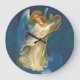 vintage art with painting of an angel with angelic expression, beautiful flowing dress and golden harp.
