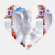 A fantasized, graphic art, of a porcelain, Cherub angel, kneeling in front of, a glowing, red, jewel-encrusted box-seeming, to be gazing, at his reflection, in a reflecting pool.